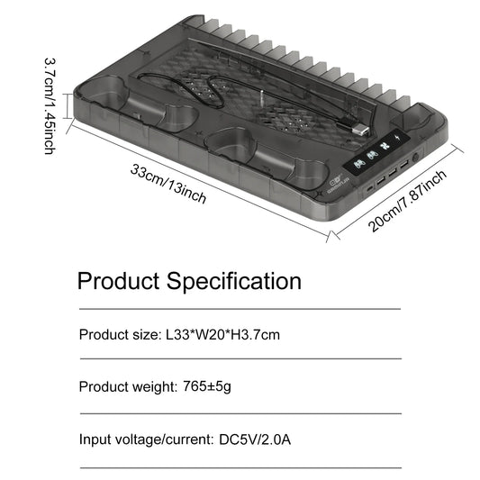 Base Refrigerada para PS5 con Cargador Dual de Mandos y Soporte para Auriculares